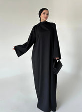 Elevate your modest wardrobe with this effortlessly elegant sand-beige abaya, designed for the woman who appreciates refined simplicity. Crafted from a smooth, medium-weight fabric, this piece drapes beautifully while offering full comfort and coverage. Its clean lines and minimalist silhouette make it perfect for both everyday wear and special occasions.